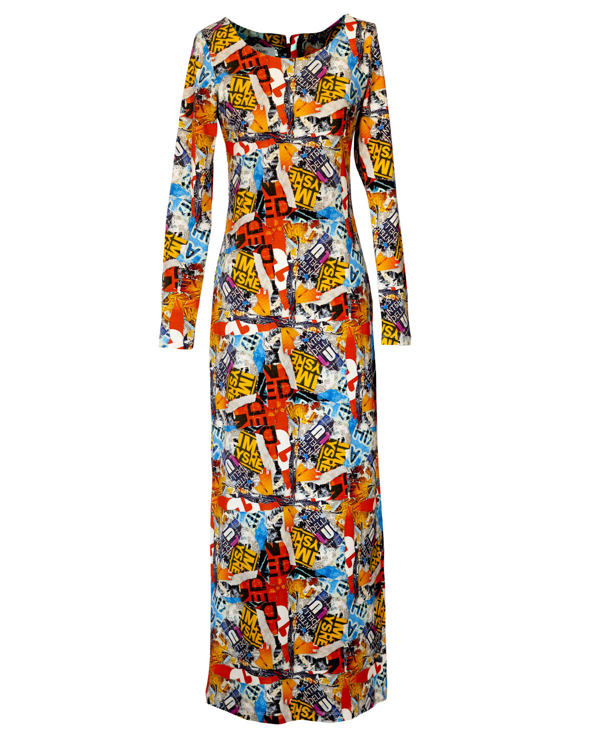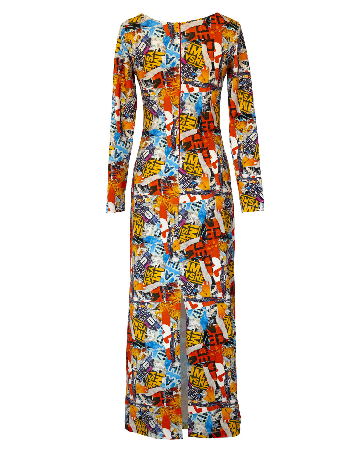 Abito in jersey elasticizzato. Modello lungo alla caviglia con maniche lunghe aderenti e spacco dietro. Scollatura rotonda ampia.