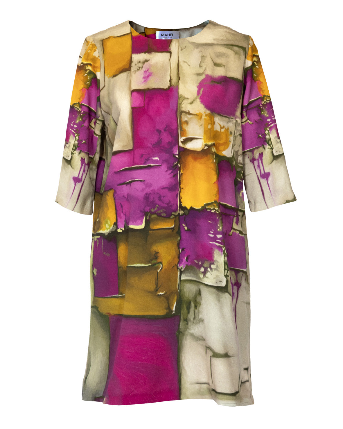 Abito a tunica in viscosa. Modello lungo sopra al ginocchio e con maniche ampie a 3/4 .