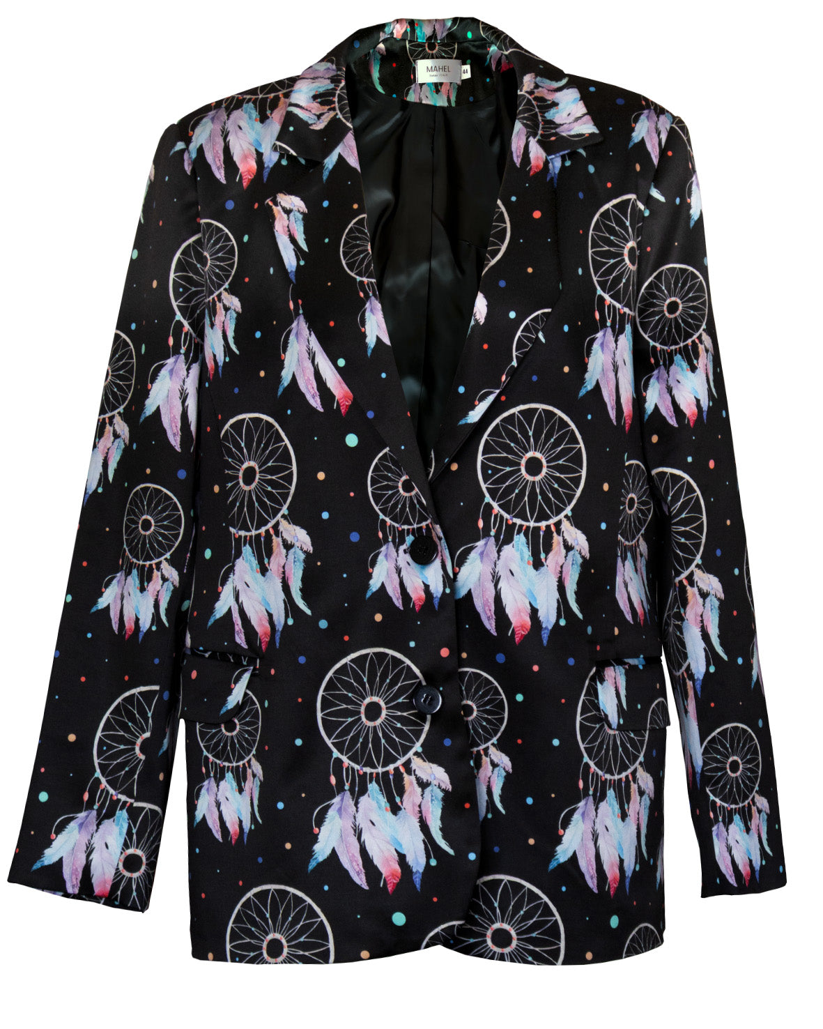 Giacca sartoriale di taglio "maschile" con 2 bottoni. Tasche con pattina e preziosi bottoni in madreperla. Tessuto raso di cotone.